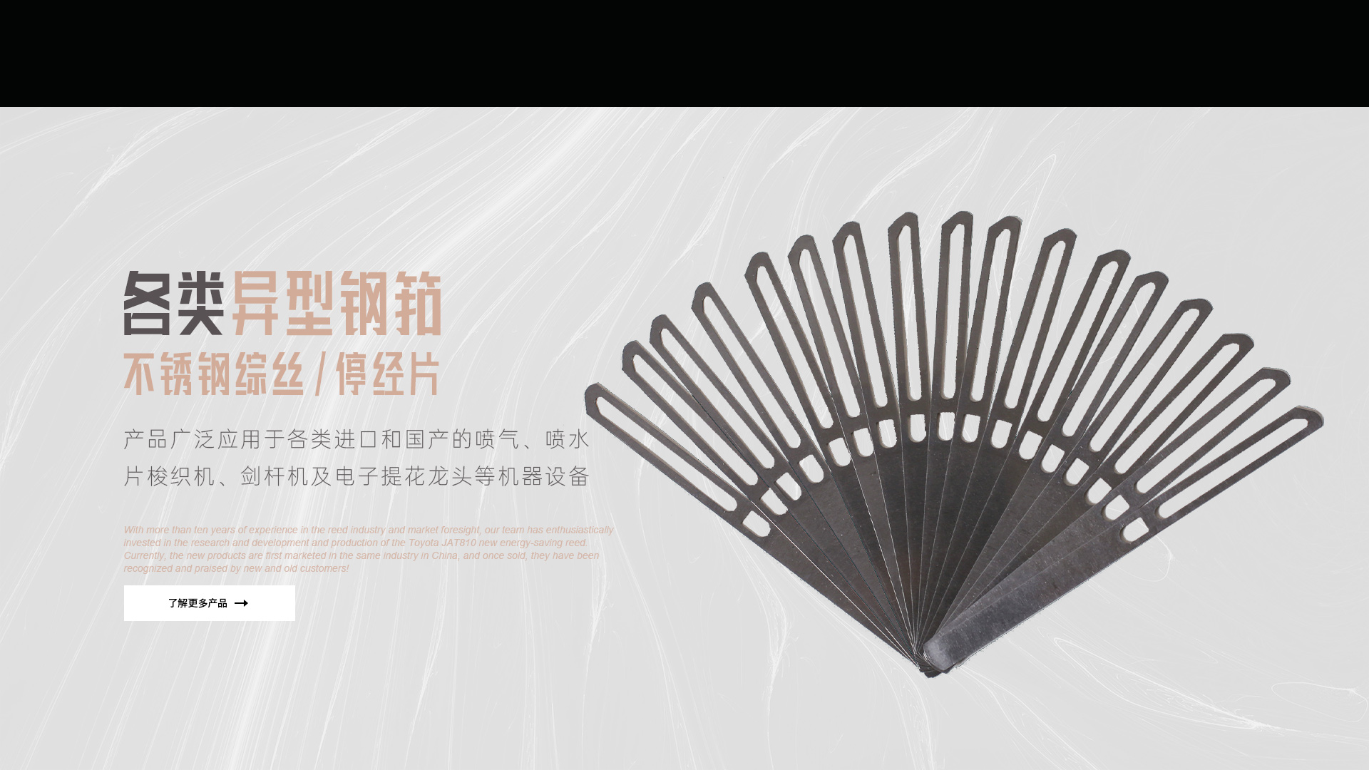 憑借十多年鋼筘行業經驗及對市場的前瞻性,我們團隊滿懷熱情的投入到豐田JAT810新型節能鋼筘的研發和生產當中,目前新產品在國內同行業中先行上市銷售,一經銷售就得到了新老客戶的認可和好評!